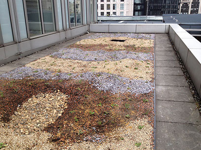 Regeneration of existing green roof area devoid of vegetation at London Offices
