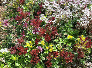 A typical extensive Sedum or grass roof is relatively low in ecological value although attractive to bees in the Summer, but a 'true' biodiverse roof has a lot more besides, with the emphasis on attracting nature to the urban realm. A mature Nature Roof looks just like a flowering meadow bristling with life. A certain level of biodiversity can be achieved, though less easily, on an external living wall.